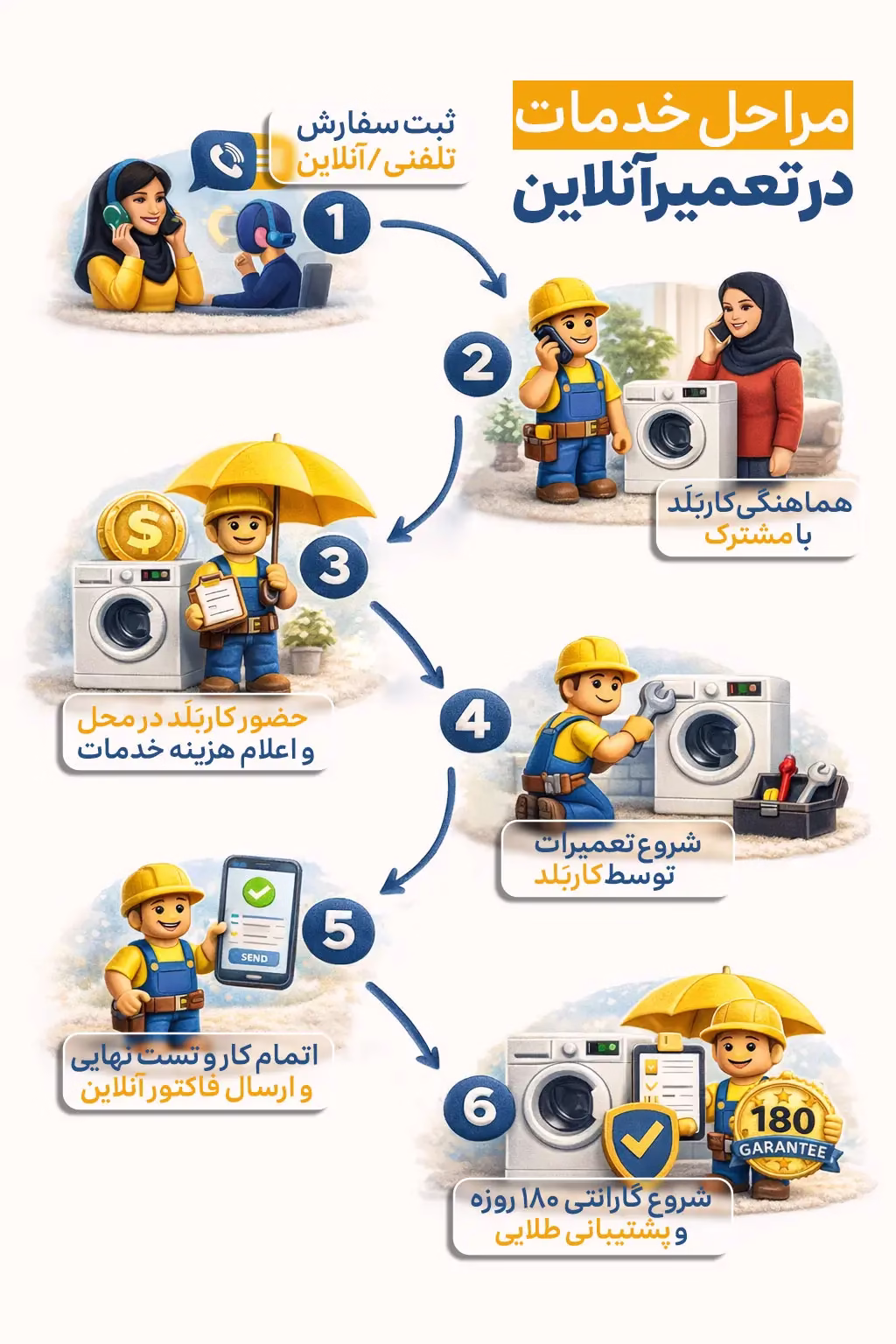 تعمیرآنلاین به عنوان یکی از معتبرترین شرکت های خدمات لوازم خانگی در ایران، تحت نظارت سازمــان اصناف و اتحادیه های لوازم خانگی و صنعتـــــــــــی می باشد. در حال حاضر پرطرفـدارترین شرکــــــــت خدماتی کشور در شبکه های مجازی و آنلایـــــــــن تعمیرآنلاین می باشد. از ویژگی های تعمیرآنلاین، می توان پشتیبانی قوی ، کارشناسان مجرب، تعمیرات برندهای معتبر دنیا از جمله بوش، آاگ،ال جی، سامسونگ، دوو، جنرال ، ایندزیت، آریستون و برندهای مطرح ایرانی از جمله اسنوا، پاکشوما، جی پلاس و … اشاره کرد. تخصص شرکت تعمیرآنلاین لوازم خانگی است. پس برای تعمیرات لوازم منزل از جمله لباسشویی، گـــاز ،ظرفشویی، یخچال و سایـــــد، ماکروفر و سولاردوم پکیج، جاروبرقی و دیگر لوازم خانگی با ما در ارتبـــاط باشید.